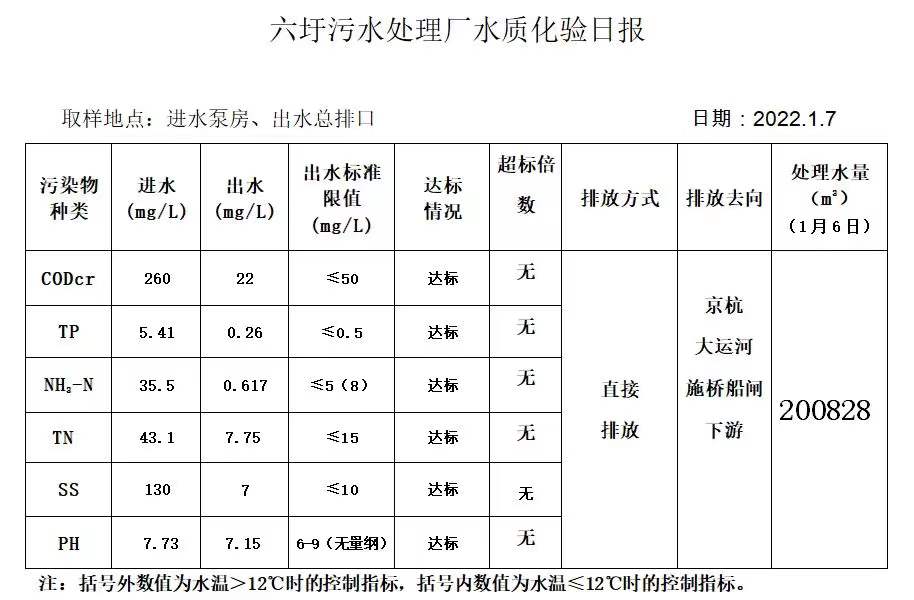 六圩污水处理厂水质化验日报(2022.1.7)