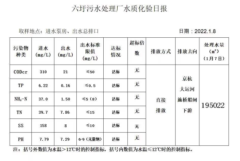 六圩污水处理厂水质化验日报(2022.1.8)