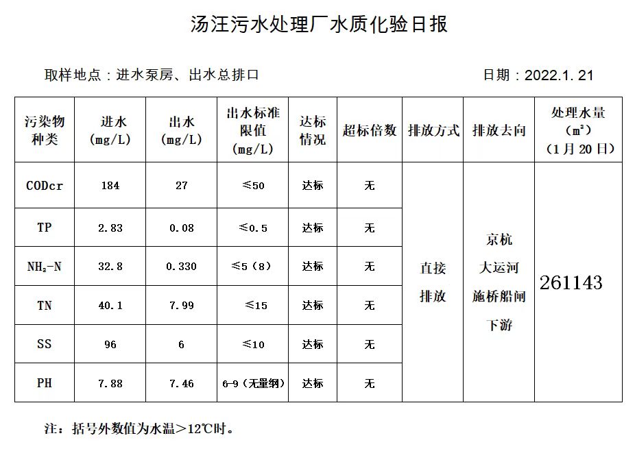 汤汪污水处理厂水质化验日报(2022.1.21)