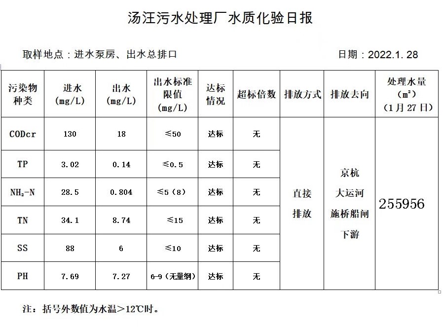 汤汪污水处理厂水质化验日报(2022.1.28)
