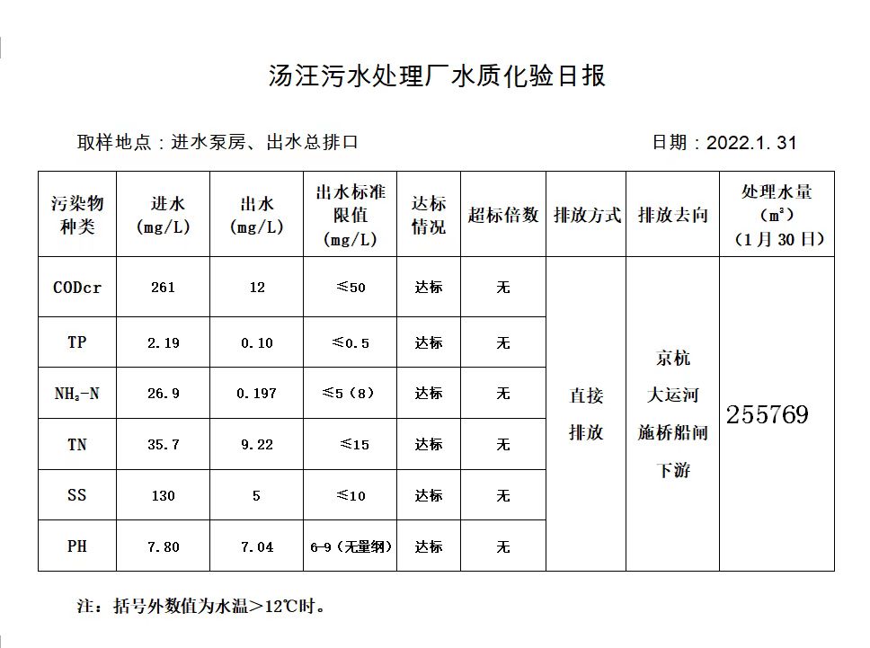汤汪污水处理厂水质化验日报(2022.1.31)
