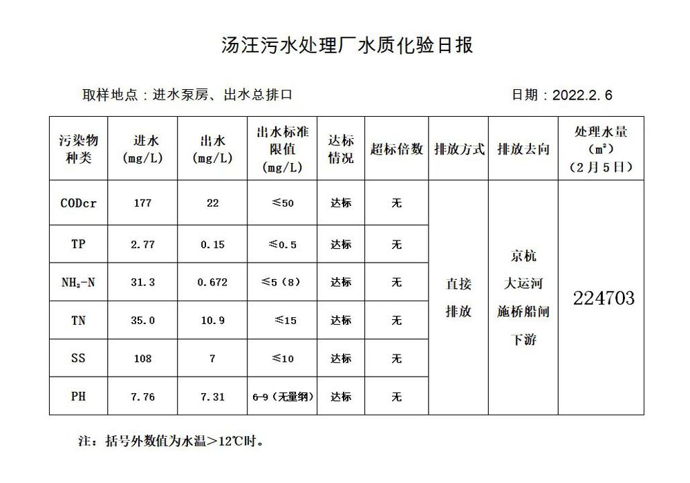 汤汪污水处理厂水质化验日报(2022.2.6)