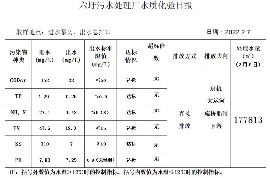 六圩污水处理厂水质化验日报(2022.2.7)