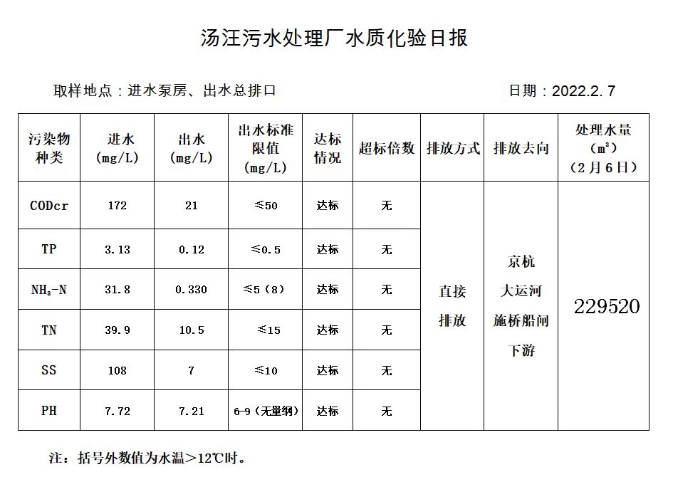 汤汪污水处理厂水质化验日报(2022.2.7)