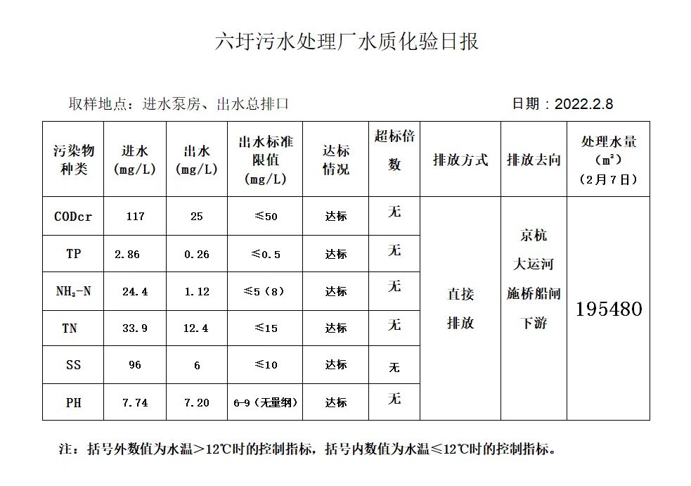 六圩污水处理厂水质化验日报(2022.2.8)