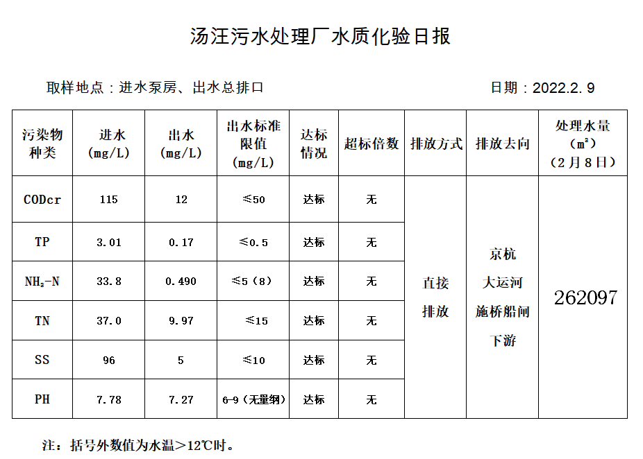 汤汪污水处理厂水质化验日报(2022.2.9)