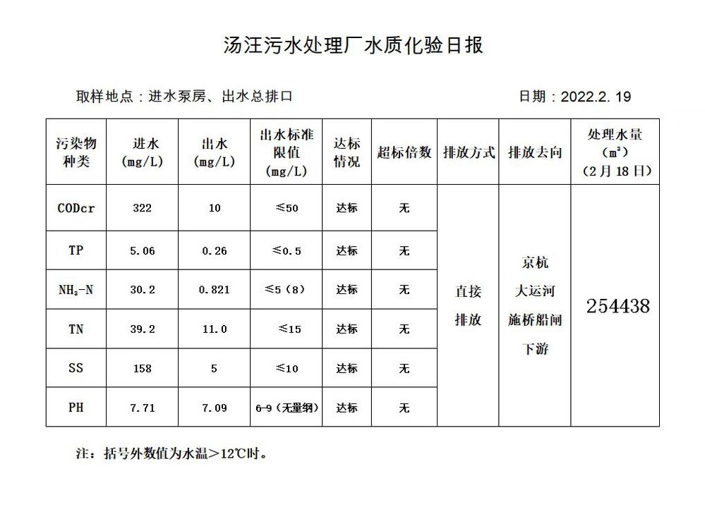 汤汪污水处理厂水质化验日报(2022.2.19)