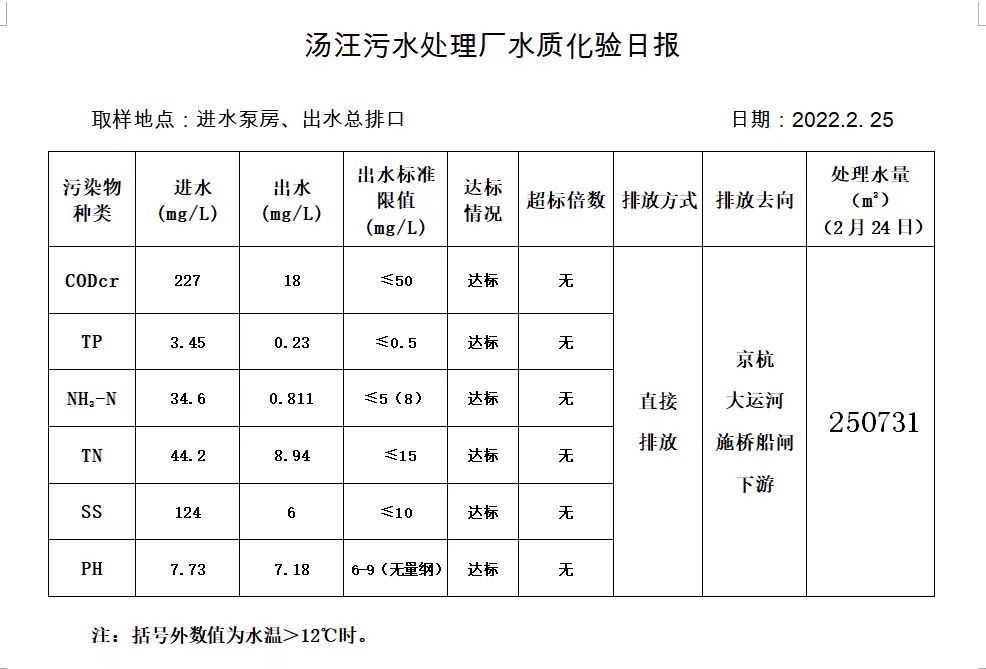 汤汪污水处理厂水质化验日报(2022.2.25)