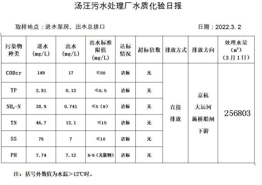 汤汪污水处理厂水质化验日报(2022.3.2)