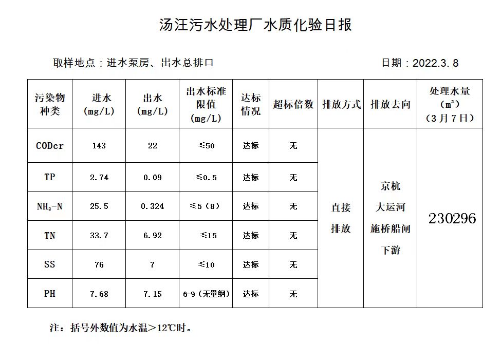 汤汪污水处理厂水质化验日报(2022.3.8)