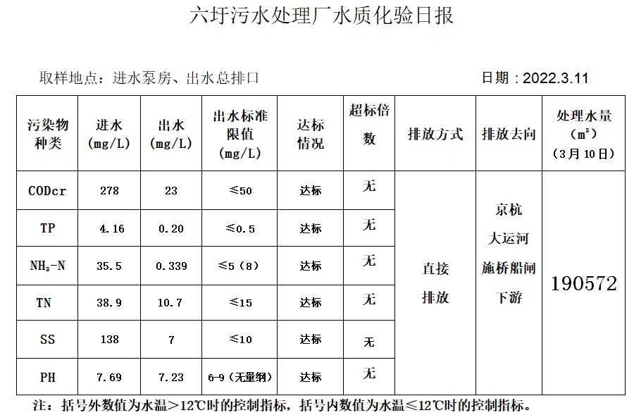 六圩污水处理厂水质化验日报(2022.3.11)