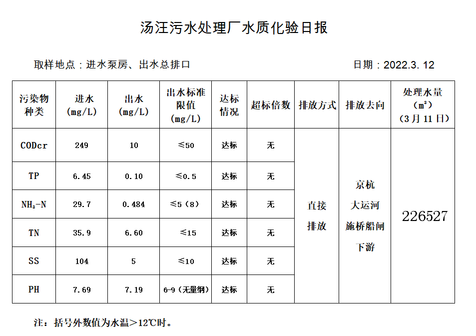 汤汪污水处理厂水质化验日报(2022.3.12)