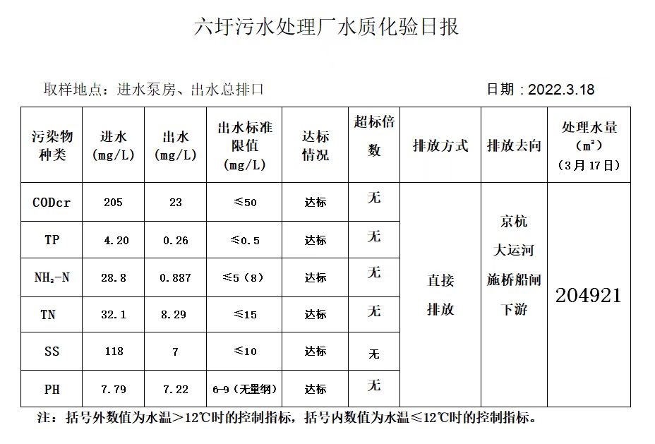 六圩污水处理厂水质化验日报(2022.3.18)