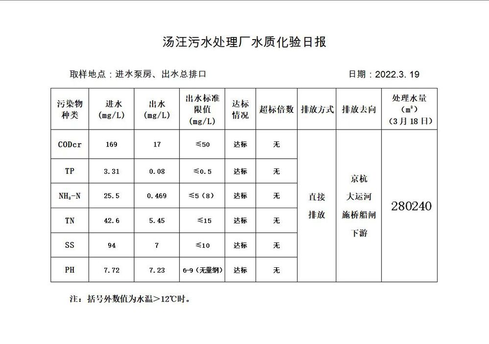 汤汪污水处理厂水质化验日报(2022.3.19)