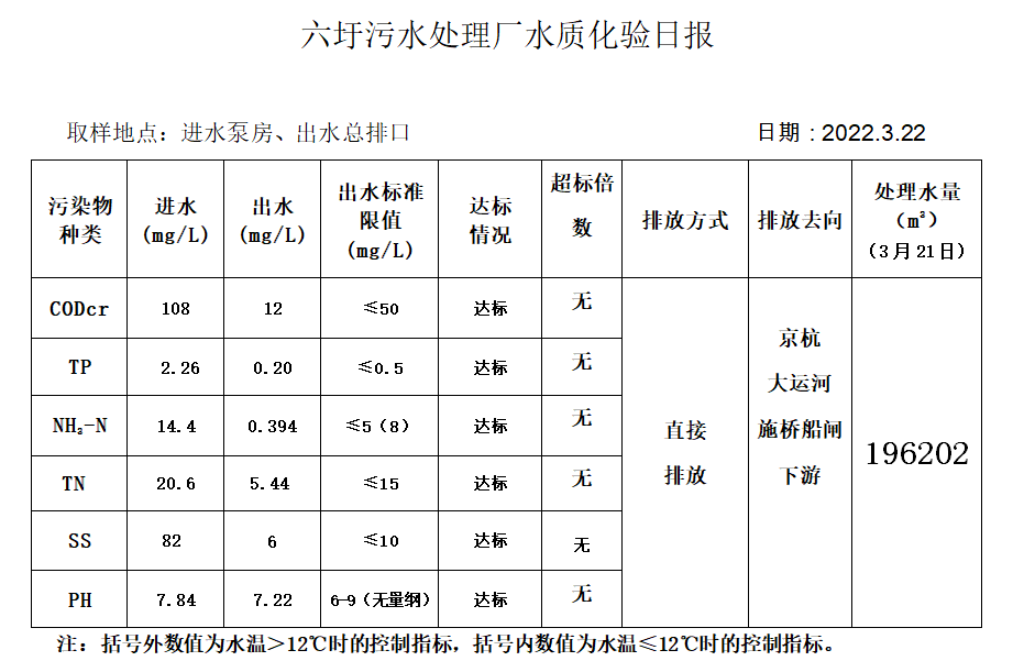 六圩污水处理厂水质化验日报(2022.3.22)