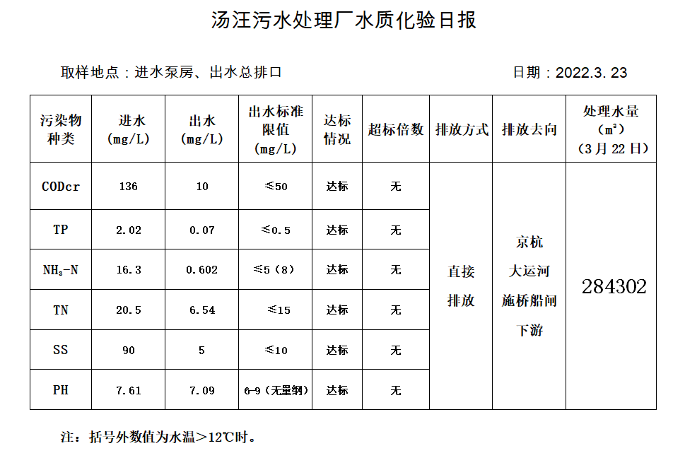 汤汪污水处理厂水质化验日报(2022.3.23)