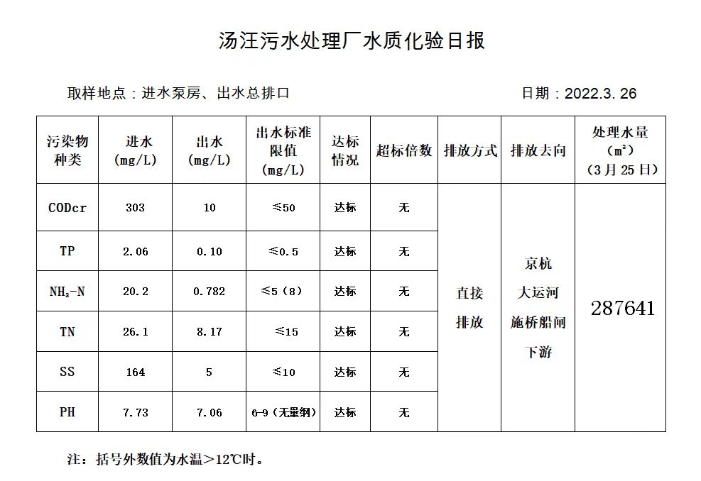 汤汪污水处理厂水质化验日报(2022.3.26)