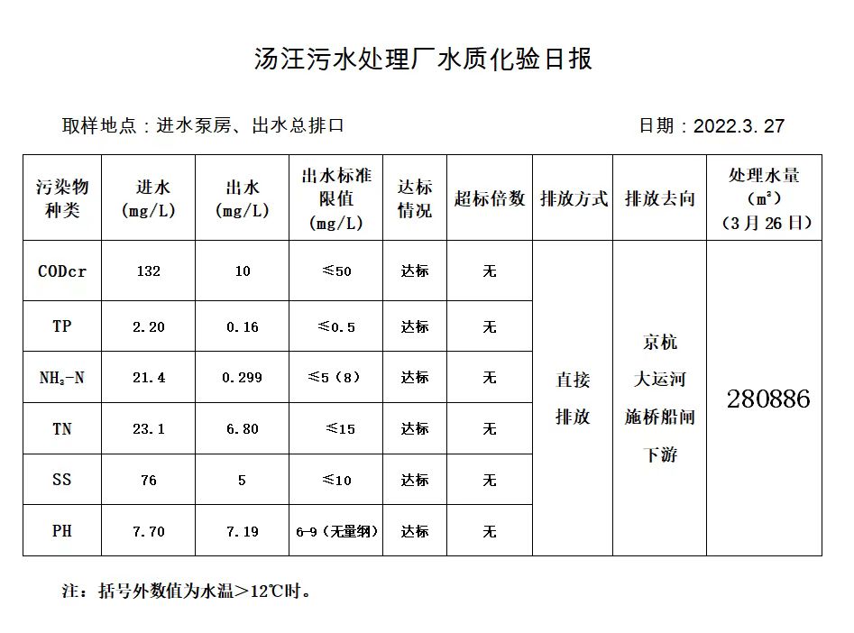 汤汪污水处理厂水质化验日报(2022.3.27)