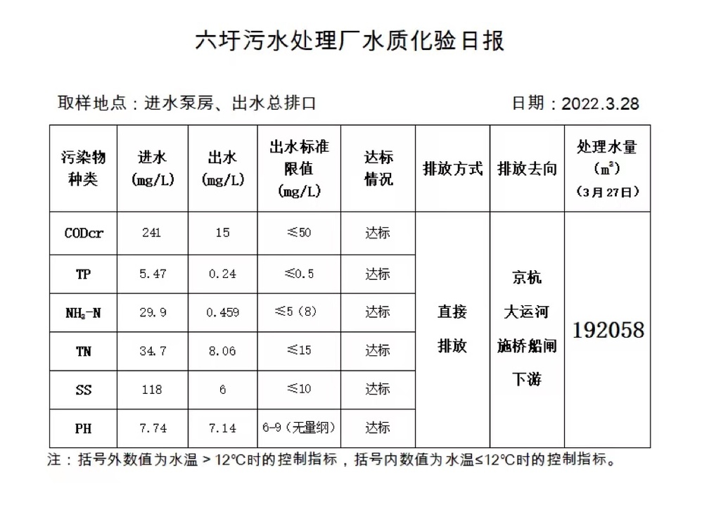 六圩污水处理厂水质化验日报(2022.3.28)