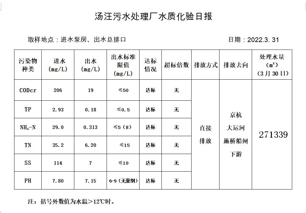 汤汪污水处理厂水质化验日报(2022.3.31)
