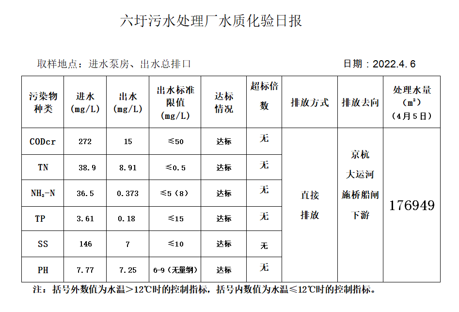 六圩污水处理厂水质化验日报(2022.4.6)