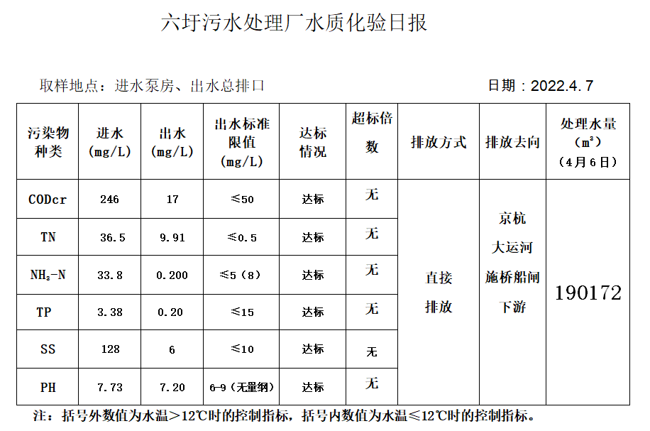 六圩污水处理厂水质化验日报(2022.4.7)
