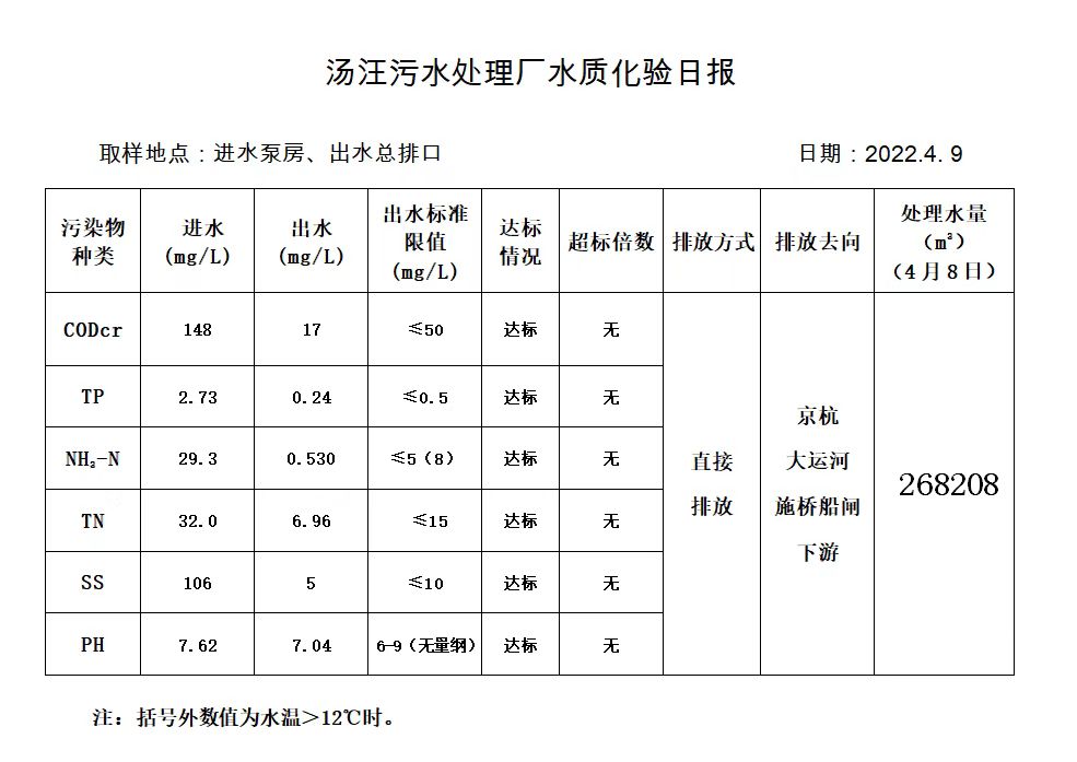 汤汪污水处理厂水质化验日报(2022.4.9)