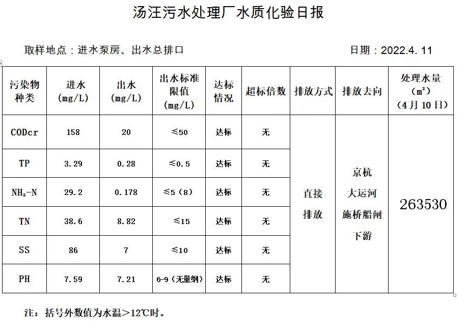 汤汪污水处理厂水质化验日报(2022.4.11)