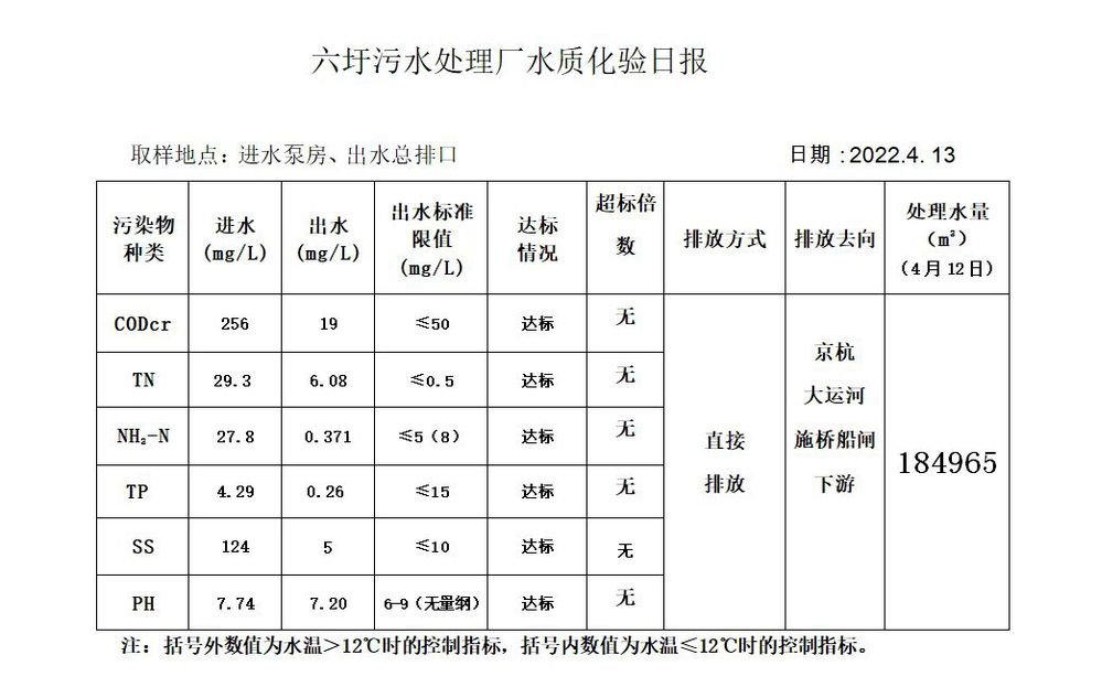 六圩污水处理厂水质化验日报(2022.4.13)