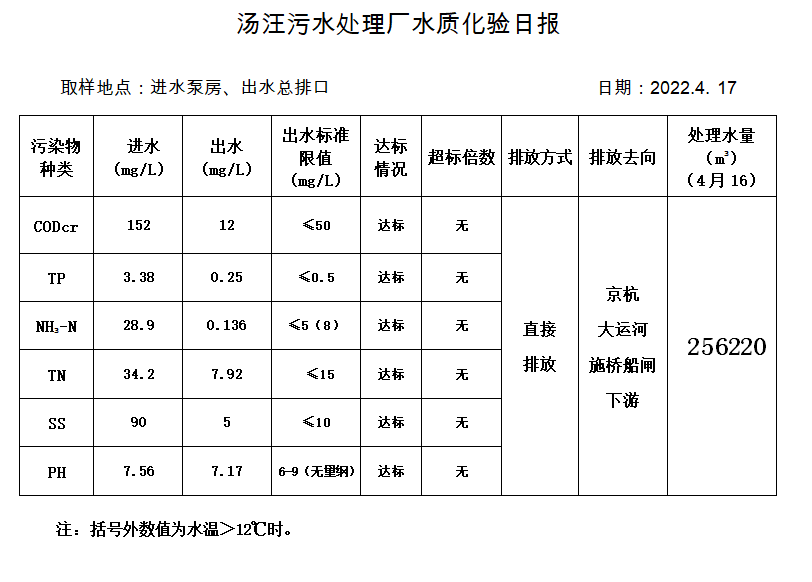 汤汪污水处理厂水质化验日报(2022.4.17)
