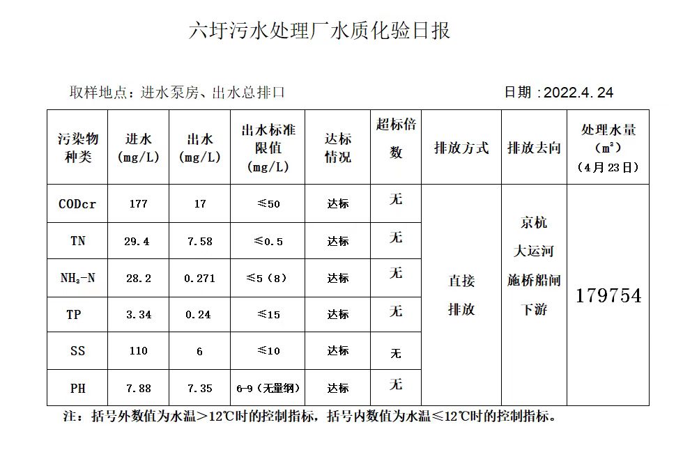 六圩污水处理厂水质化验日报(2022.4.24)