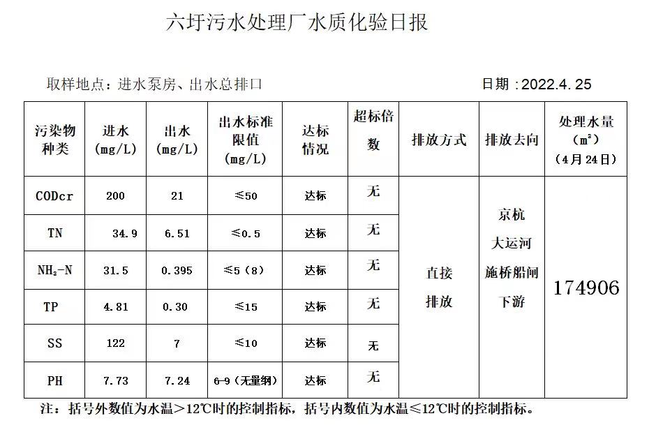 六圩污水处理厂水质化验日报(2022.4.25)
