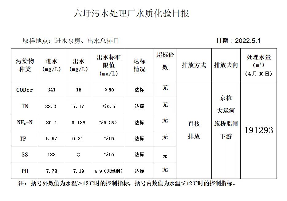 六圩污水处理厂水质化验日报(2022.5.1)