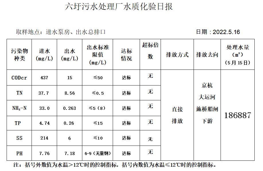 六圩污水处理厂水质化验日报(2022.5.16)