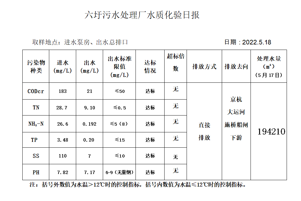 六圩污水处理厂水质化验日报(2022.5.18)