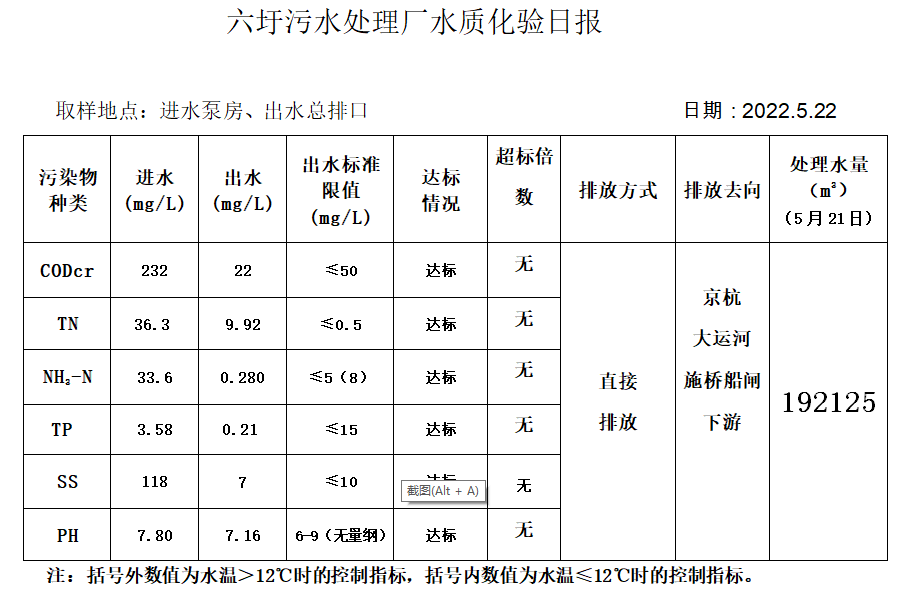 六圩污水处理厂水质化验日报(2022.5.22)
