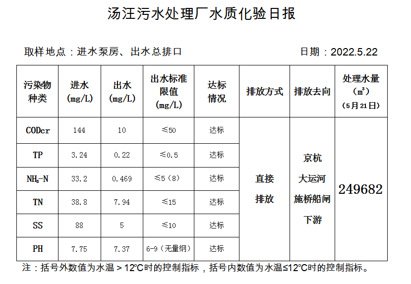 汤汪污水处理厂水质化验日报(2022.5.22)