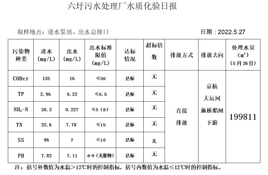 六圩污水处理厂水质化验日报(2022.5.27)