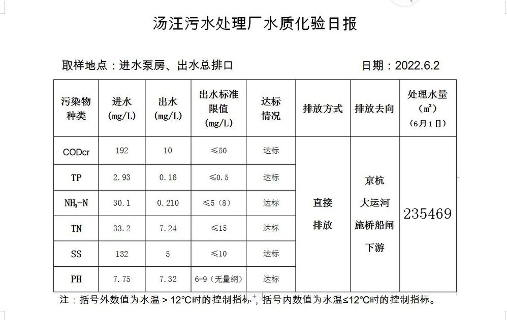 汤汪污水处理厂水质化验日报(2022.6.2)