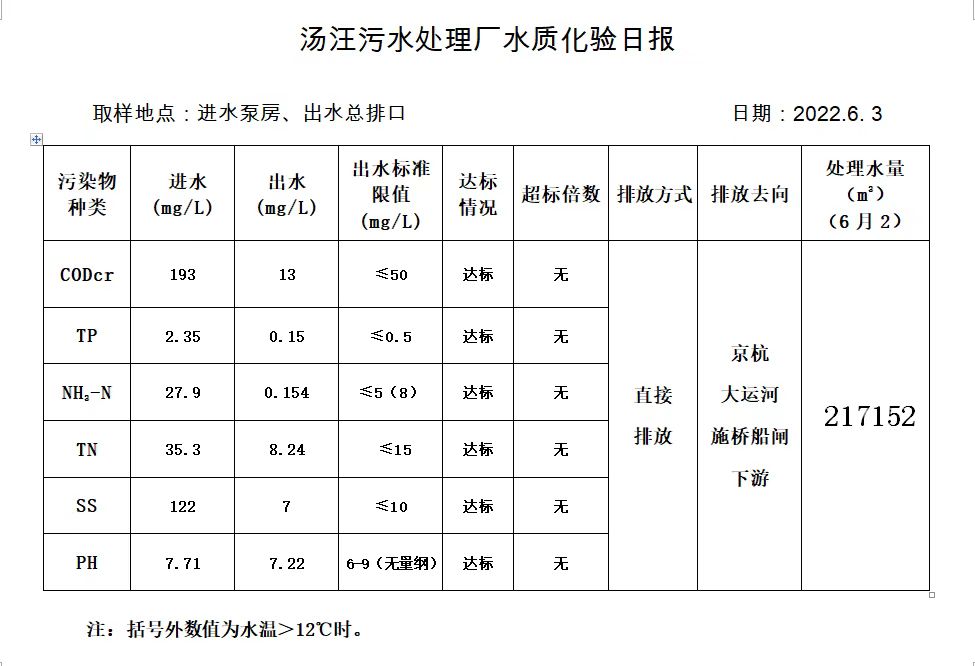 汤汪污水处理厂水质化验日报(2022.6.3)