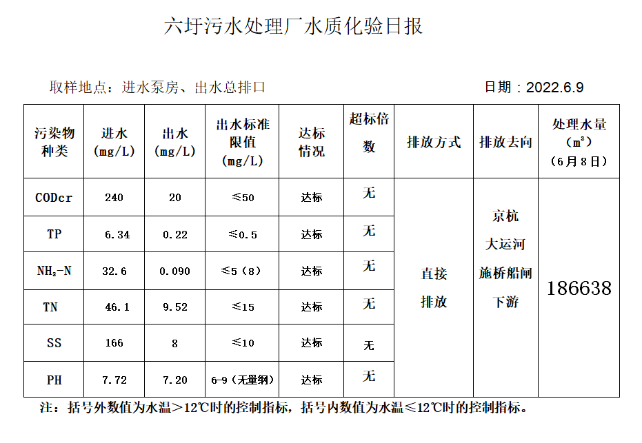 六圩污水处理厂水质化验日报(2022.6.9)