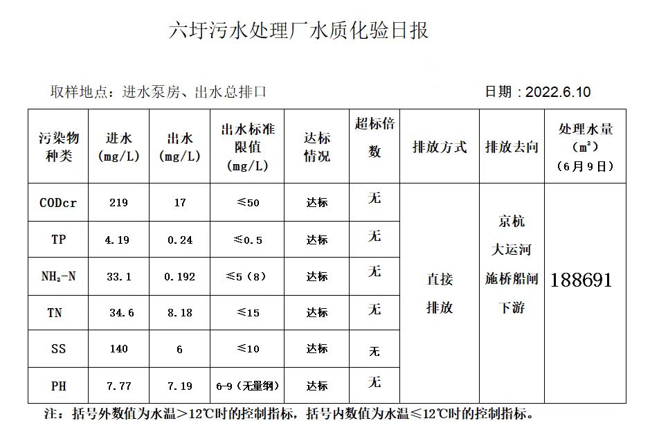 六圩污水处理厂水质化验日报(2022.6.10)
