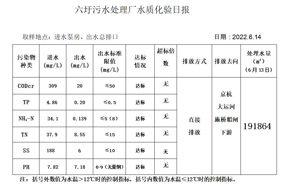 六圩污水处理厂水质化验日报(2022.6.14)