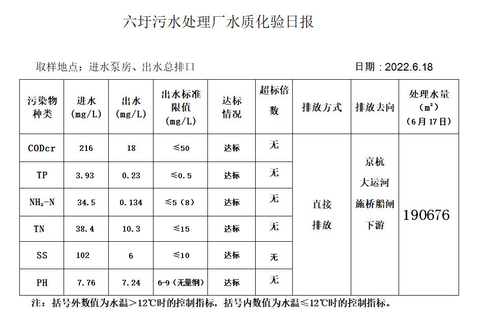 六圩污水处理厂水质化验日报(2022.6.18)