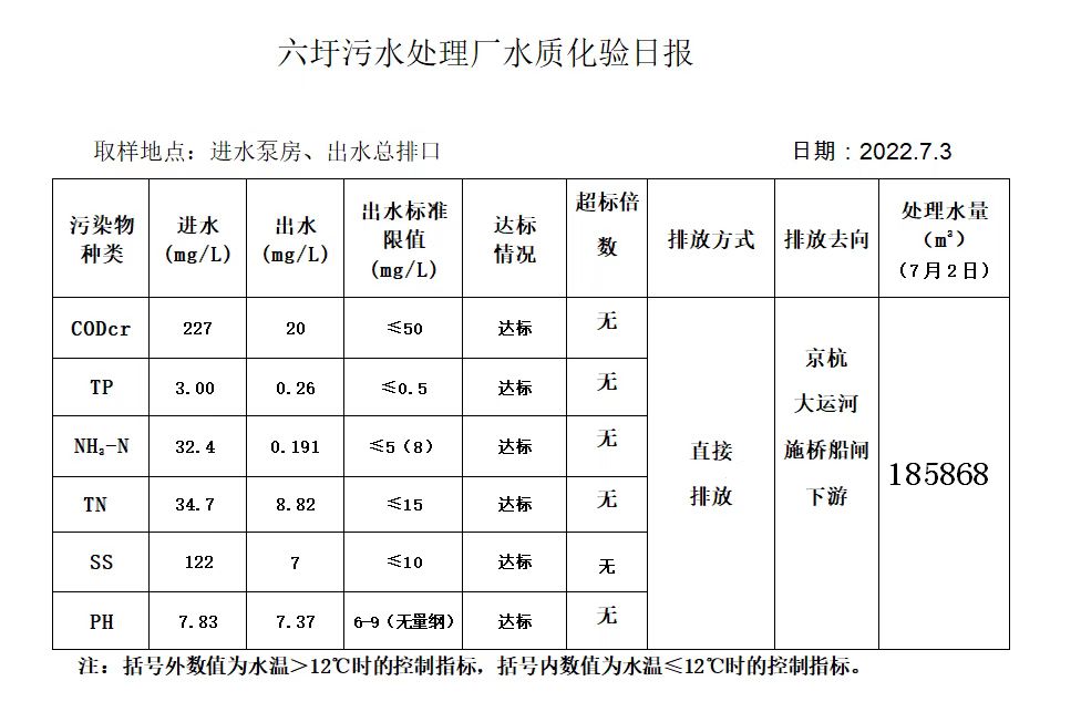 六圩污水处理厂水质化验日报(2022.7.3)
