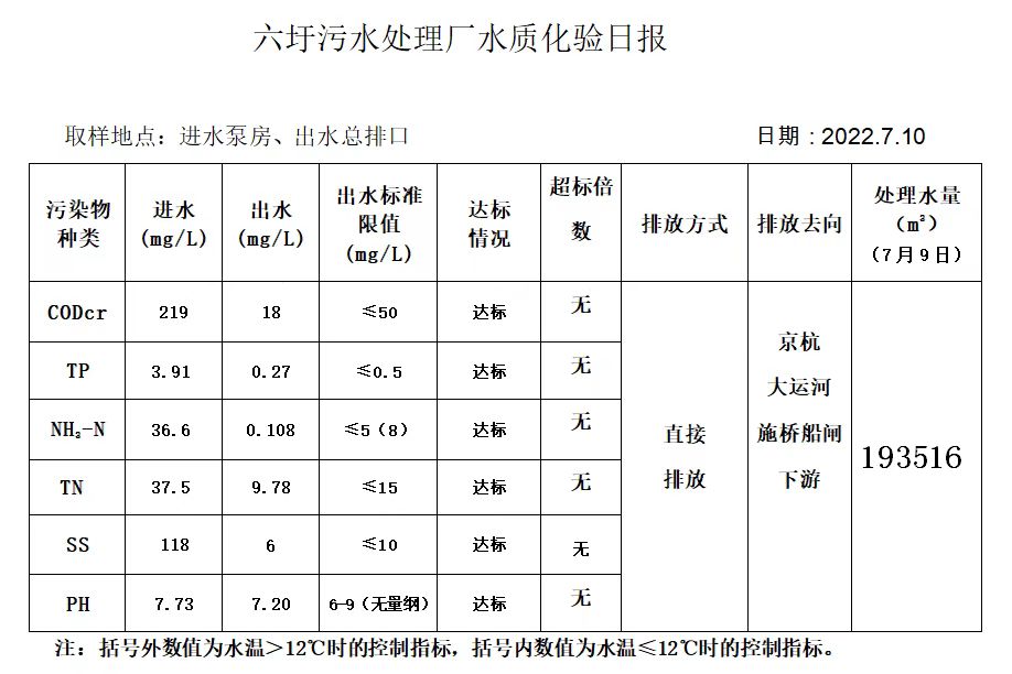 六圩污水处理厂水质化验日报(2022.7.10)