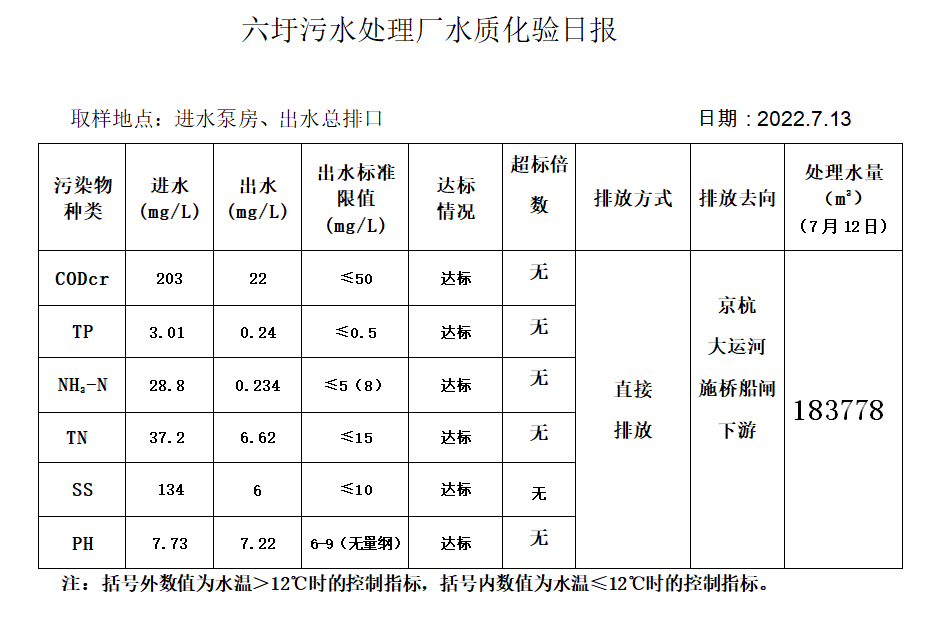 六圩污水处理厂水质化验日报(2022.7.13)
