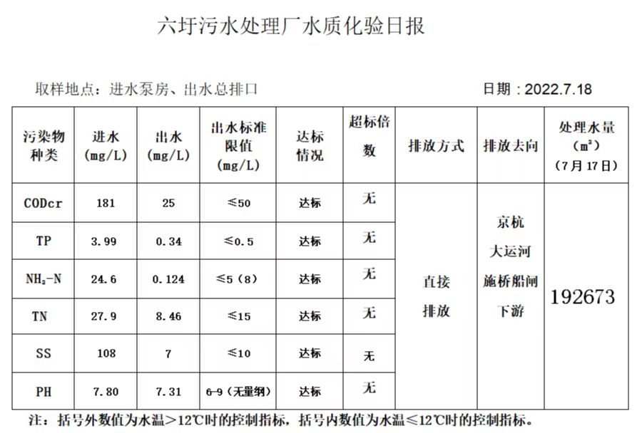 六圩污水处理厂水质化验日报(2022.7.18)