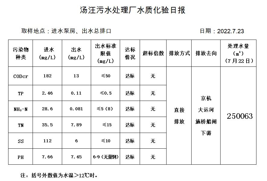 汤汪污水处理厂水质化验日报(2022.7.23)