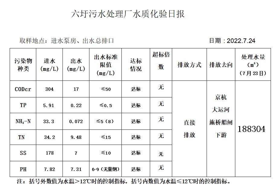 六圩污水处理厂水质化验日报(2022.7.24)